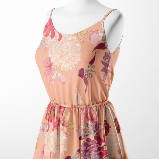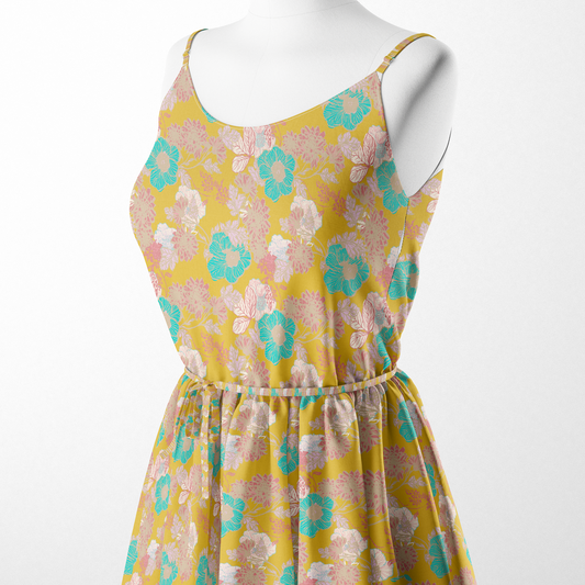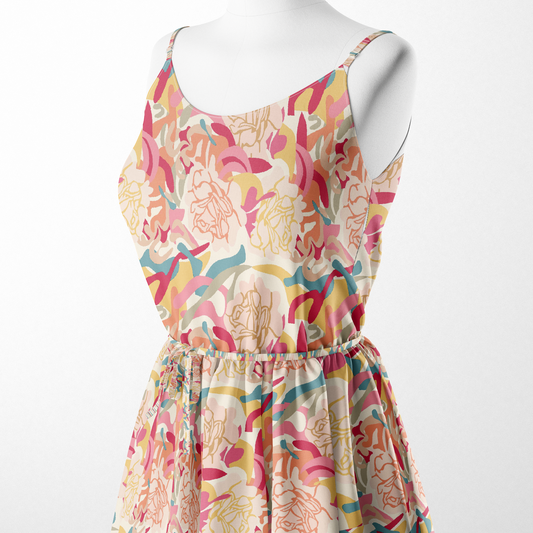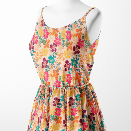 White Flowers on Pink Pastel Background Digital Printed fabric