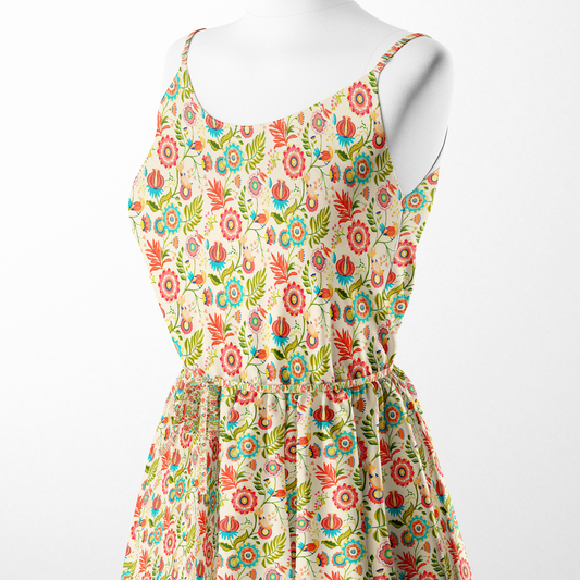 Floral Pattern Pink Roses basket Digital Printed Fabric