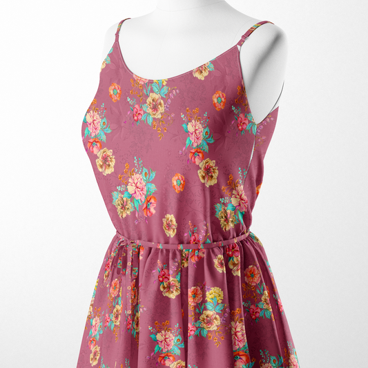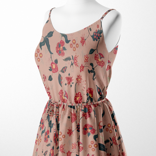 Peach Floral Digital Printed Fabric