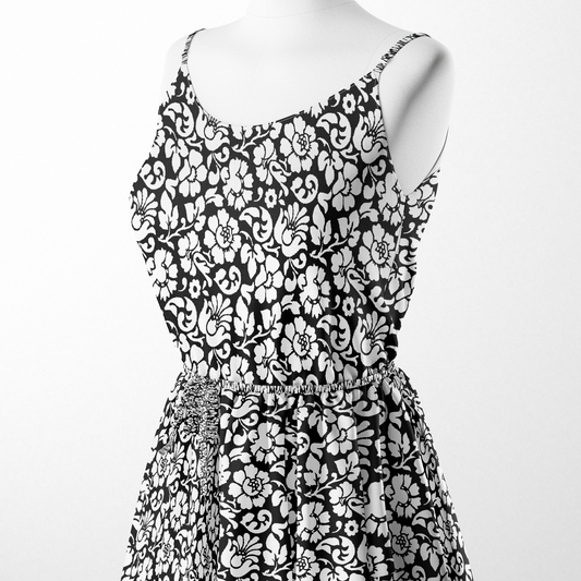 Floral Black And White Digital Printed Fabric