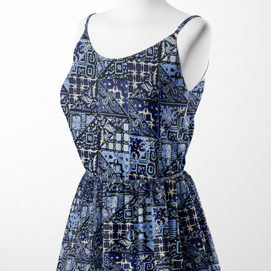 Blue Hand Drawn Ethnic Digital Printed Fabric