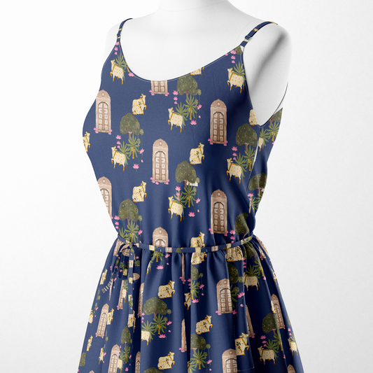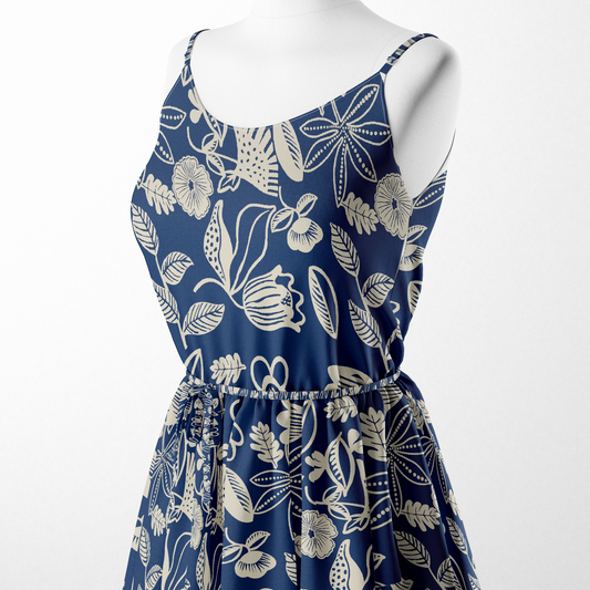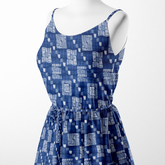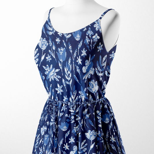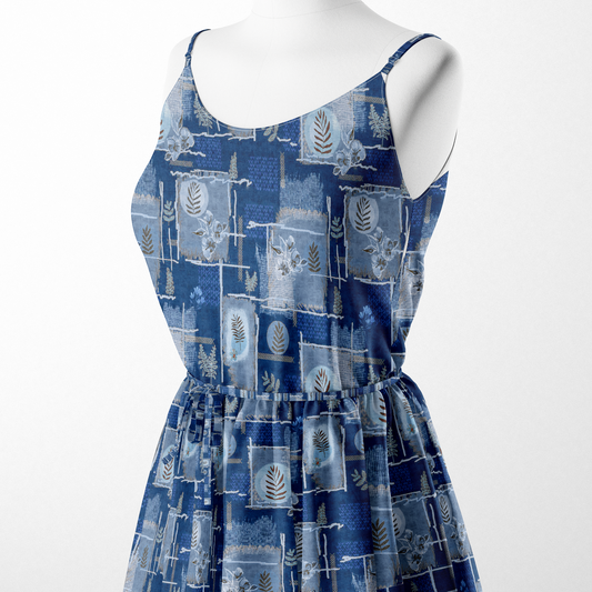 Sevenberry Bamboo Indigo Digital Printed Fabric