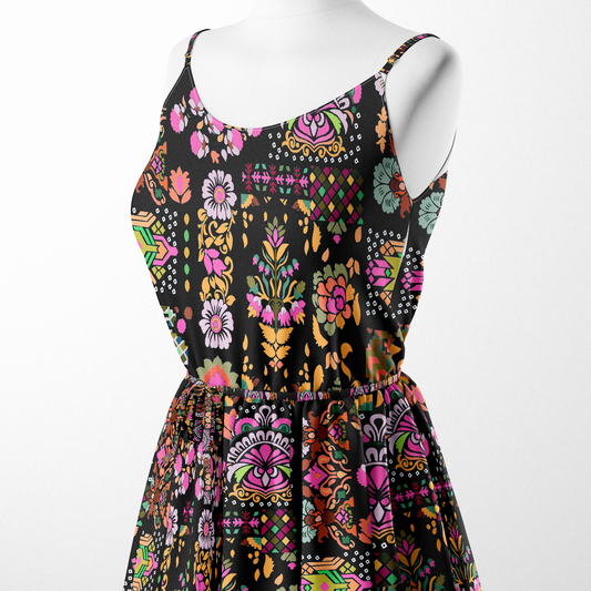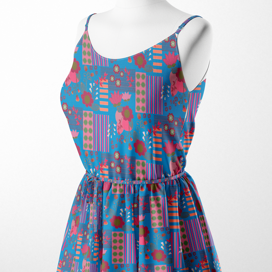 Blue Mughal Flora Navratri Digital Printed Fabric