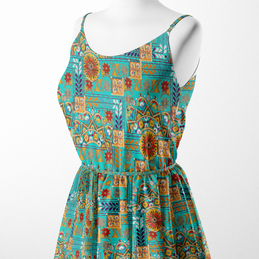 Blue Mughal Flora Navratri Digital Printed Fabric