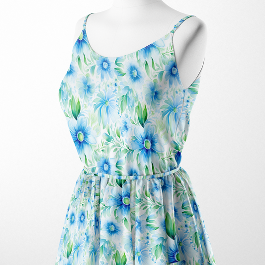 Blue Flower Pattern Digital Printed Fabric