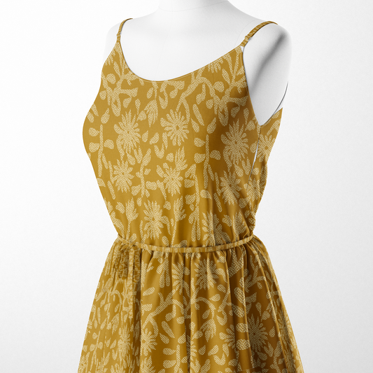 Yellow Flower Pattern Digital Printed Fabric